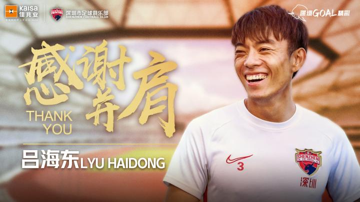 吕海东1992年1月生于辽宁抚顺,2016年2月加盟深圳队,为球队出场50次,取得3个进球和2次助攻。他是深圳队在2018赛季的左后卫主力队员,为球队冲超成功立下汗马功劳,2019赛季亦多次出战。2021赛季,他租借效力武汉三镇,出场26次,帮助三镇冲超成功。