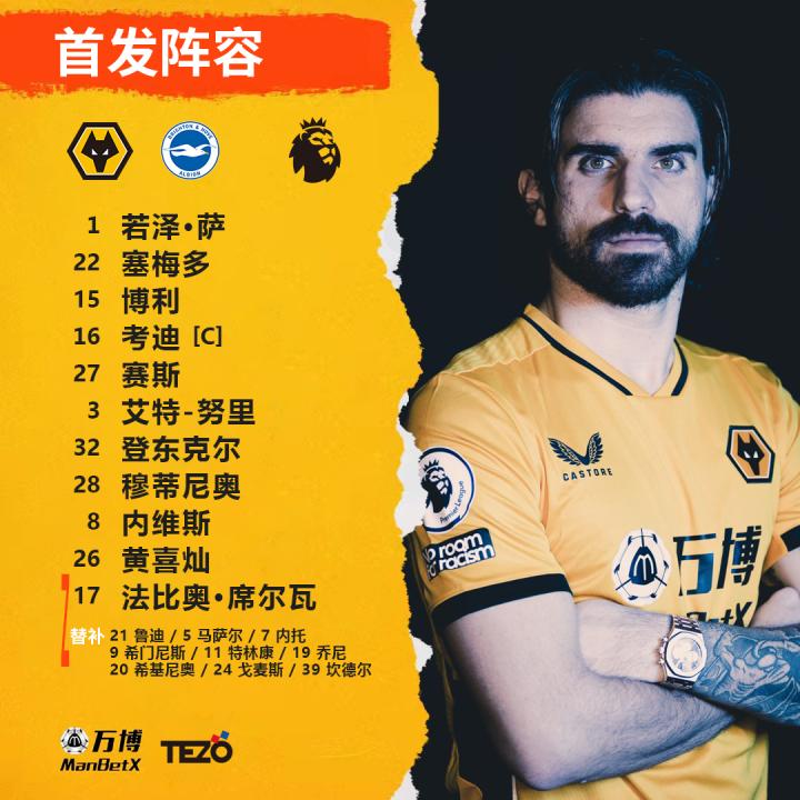 内维斯伤愈复出,狼队主场不敌布莱顿