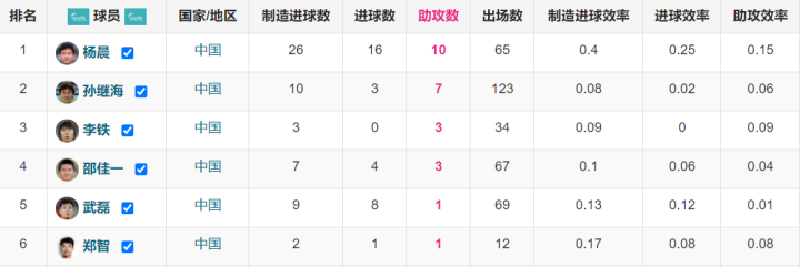 值得一提的是,奥寺康彦笔者没能挖掘到助攻数据,按照他的位置、风格和出场数来说,助攻进入前十应该没问题。此外,中国球员历史上在五大联赛只有6人送出过助攻,分别是杨晨10次、孙继海7次、李铁3次、邵佳一3次、郑智1次和武磊1次。