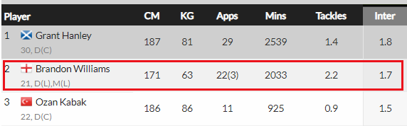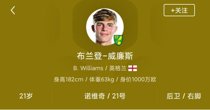 布兰登-威廉姆斯 B. Williams 左/右后卫 诺维奇(租借)