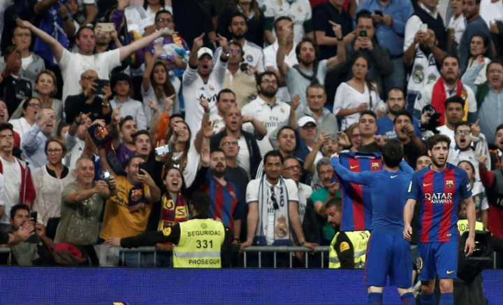 北京时间2017年4月24日,16-17赛季西甲第33轮,西班牙国家德比皇马主场迎战巴萨。卡塞米罗首开纪录,随后梅西和拉基蒂奇相继建功,帮助巴萨反超比分。皇马在拉莫斯被罚下的不利局面下凭借哈梅斯的进球扳平比分。伤停补时阶段,巴萨在一次快速反击中由梅西上演一剑封喉好戏,最终完成绝杀。更具意义的是,梅西绝杀皇马的进球还是他职业生涯第500球里程碑纪念。