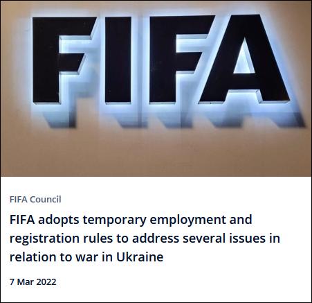 3月初,国际足联发表公开声明,表示在2022年6月30日前,俄超联赛的所有外籍球员和教练有权单方面终止合同,在这期间将被视为自由身。除此之外,国际足联还专门为乌克兰的外籍球员开设了一个特别转会窗口,这些球员或教练在“恢复自由身”以后可以在转会窗关闭期间完成加盟事项。