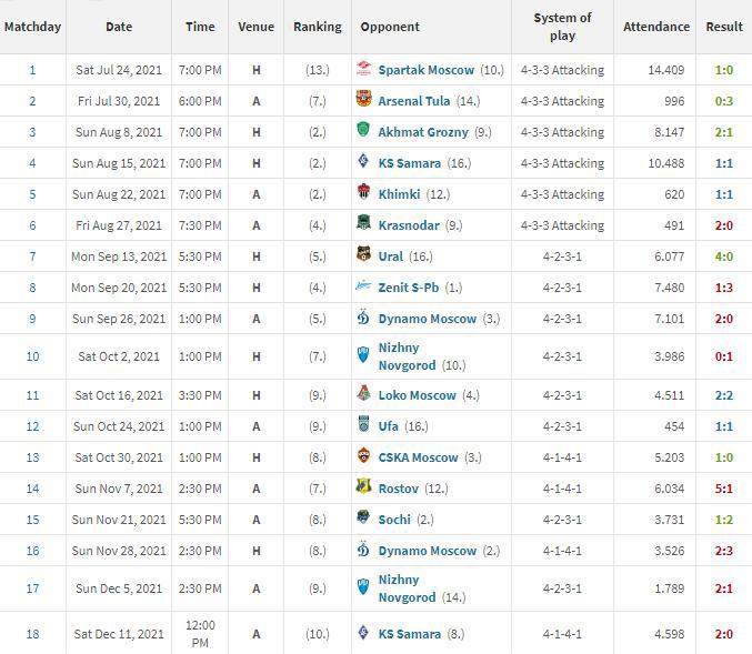 相比于喀山红宝石在积分榜上的溃退,同样遭遇严重人员流失的克拉斯诺达尔却并未受到太大的战绩影响。截止到联赛第19轮结束,克拉斯诺达尔取得了8胜5平5负积29分的成绩,在少赛一轮的情况下排名积分榜第6位。