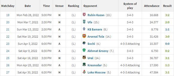 随着俄乌战争开打,克拉斯诺达尔的战绩却保持稳定:此后8轮,他们取得了4胜1平3负的战绩,反倒提升到了积分榜的第5位。