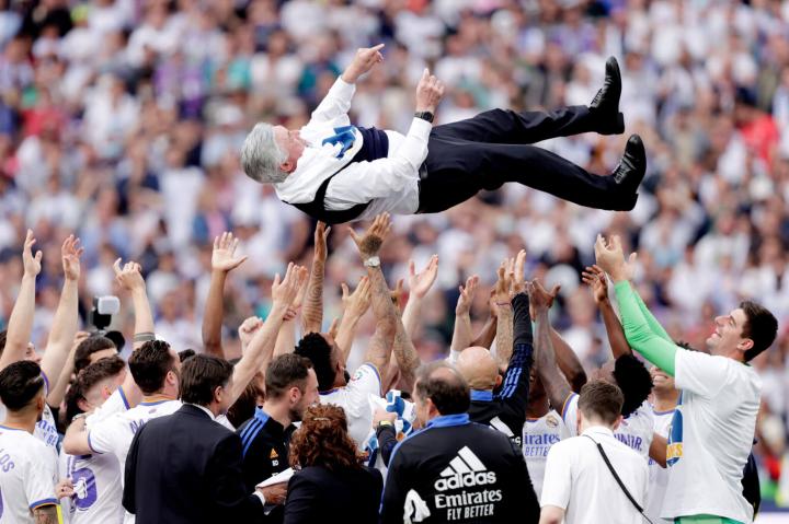 安切洛蒂也喜出望外,因为他成为有史以来第一位在欧洲五大联赛中赢得冠军的主教练——继他在意大利执教米兰(2003-04)、在英格兰执教切尔西(09-10)、在法国执教大巴黎(12-13)、在德国执教拜仁慕尼黑(16-17)和本赛季夺得西甲冠军之后。