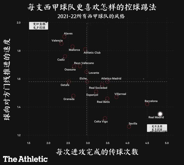 The Athletic的分析表明,任何将皇马视为纯粹的反击球队的想法都是错误的——他们每次进攻完成的传球次数比西甲任何其他球队都多,皮球向对方球门线移动的平均速度排在所有20支球队的第18位。更重要的是,安切洛蒂和他的球队倾向于适应赛季的不同阶段和不同的对手,并找出最适合每场比赛的方法。