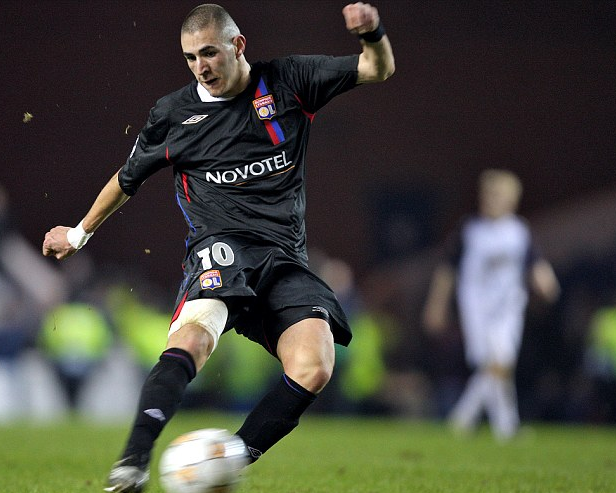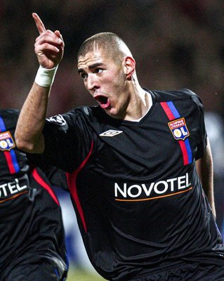 2003年本泽马正式加入了里昂青训营,本泽马在法国青年联赛中,收获了38个进球。次年,他进入了里昂预备队,随后又被当时的主教练勒冈提拔到一线队,并很快代表里昂完成了自己的职业生涯的处子秀。在代表里昂青年队同索肖青年队的一场比赛中打入4球,他还随法国队获得了U17和U19的欧洲冠军。后来,法甲、法国杯接二连三的进球;在欧冠赛场也有所斩获;法国成年国家队的首次演出,首个进球。2005年12月6日,年仅17岁的本泽马在里昂同罗森博格的比赛中迎来了欧冠处子秀,结果他在那场比赛中打入了个人欧冠处子球。