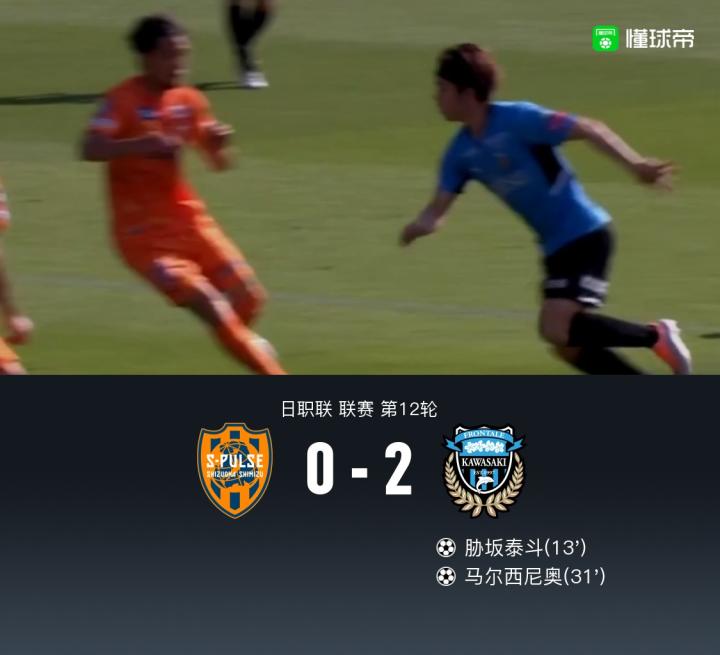 川崎前锋客场2-0清水心跳,继续位居第二,马尔西尼奥建功