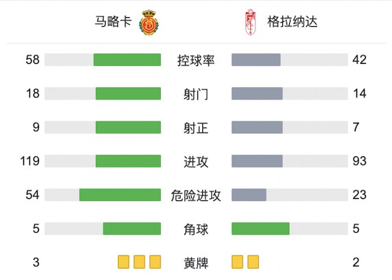 下半场开始不久,格拉纳达再次领先,埃斯库德罗低射得手,格拉纳达2-1马略卡。