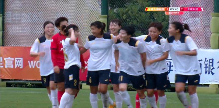 下半场开始,第53分钟,北京女足反击直塞,何湘楠突入禁区低射得分,2-1;第63分钟,北京女足获得角球,刚刚替补上场的国足队长王珊珊后插上破门,3-1,这也是她本赛季第5个进球;第71分钟,长春队替补上场的刘婧远射打后卫折射破门,2-3;第78分钟,长春队反击,高慧敏左路果断下底传中, 赵莹莹造点,队长李雯点球一蹴而就,3-3。