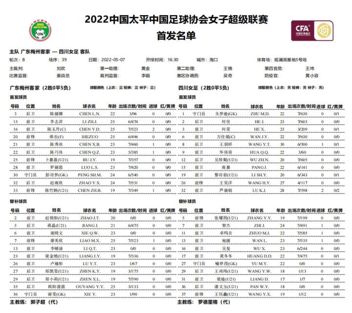 看似势均力敌的两支球队,梅州客家女足占据绝对优势。第36分钟,广东梅州客家女足李志君右路下底传中,外援维拉头球吊射破门,1-0;第88分钟,梅州队反击,19岁小将梁金艳送出助攻,维拉单刀打死角梅开二度,2-0。最终广东梅州客家女足2-0击败四川女足。梅州客家3胜5负积9分,排名上升到第7。四川队以2胜6负积6分的成绩,排名第9。
