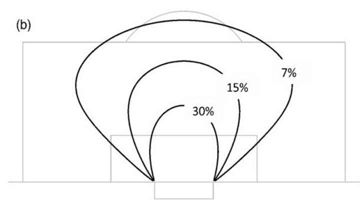 德布德的发现意味着,在接近球门的情况下,他们是否得分,都掌握在他们自己的手中。与球门角度相结合,产生了一种非线性效应,即更近,更大角度的射门更有价值。正是这种效应在不同距离的得分概率中产生了压扁环效应,如下所示: