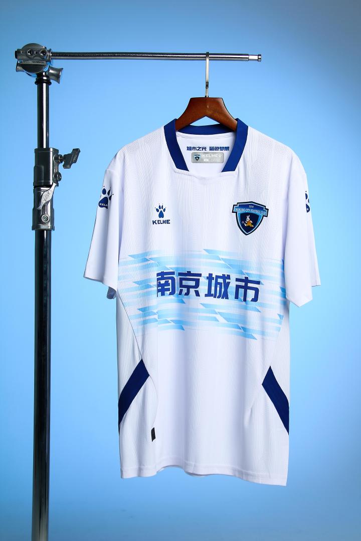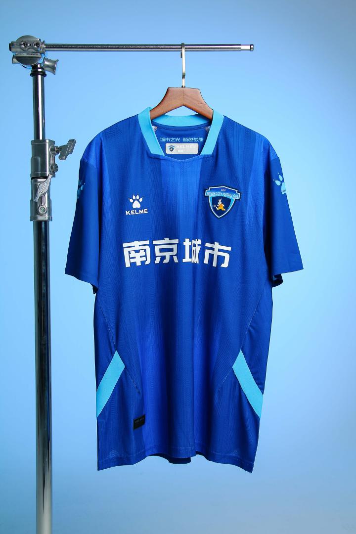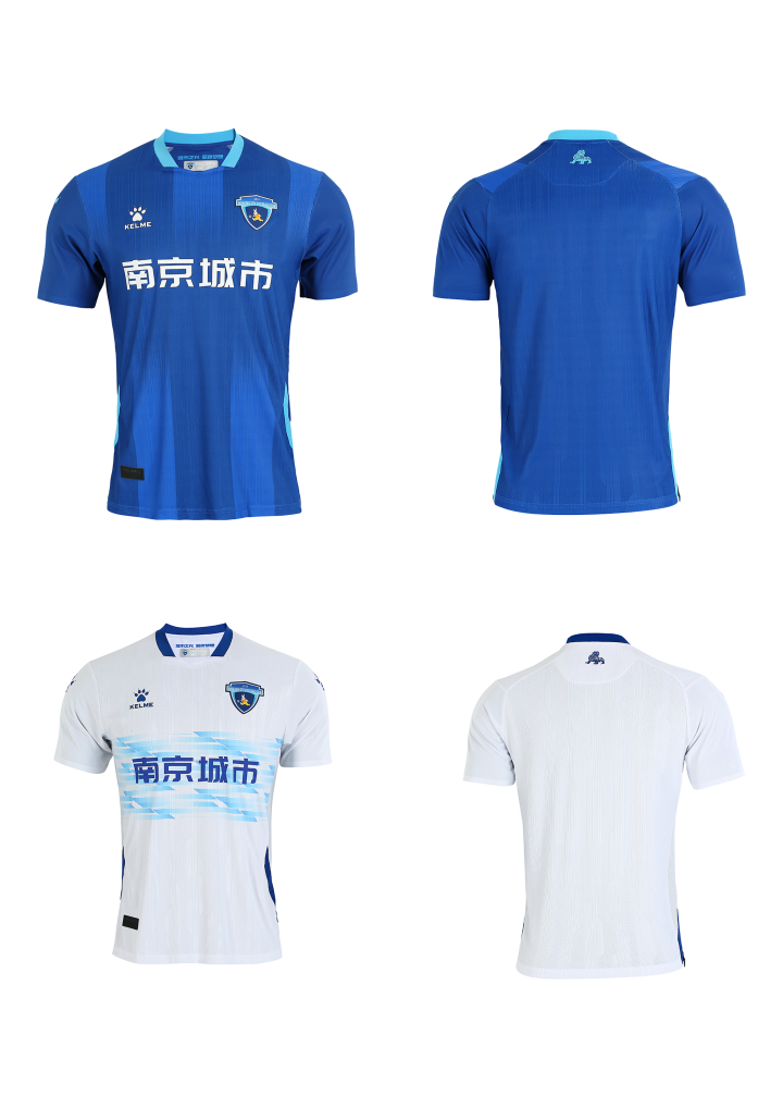 南京城市俱乐部新赛季主客场球衣延续了球队主蓝客白的搭配,球衣的设计集球队传统与本土文化于一身。设计者梵老师(网名)从俱乐部徽章渐变的蓝色组合中汲取灵感,主场球衣以正面两种蓝色调互相渗透形成的时髦渐变条纹为特色;而这座城市的厚重与活力都凝结在客场球衣胸前这座由一道道闪电组成的蓝色城墙中。