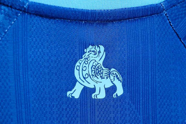 另一个独特的设计,也是南京这座城市的象征,两款球衣的领后都装饰有一枚神兽辟邪图案。