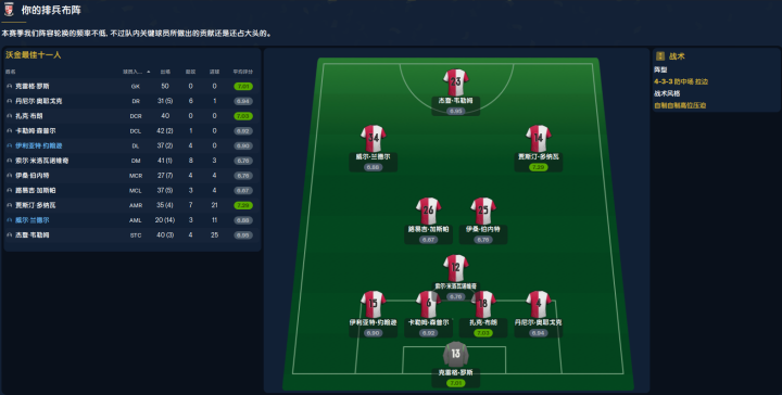 升级英乙后早期基本还是用433踢,把中卫米洛瓦诺维奇提到了后腰位置,买了扎克布朗补强中卫位置,反正就是缺人缺人缺人,杯赛直接放弃,不然那几个大哥的体能回到联赛根本踢不了,还怕受伤。右边锋多纳瓦算是个惊喜,免签来的,因为看潜力值可能踢不上首发,结果最终拿了年度最佳球员,“终于等到你,还好我没放弃。”而头号射手韦勒姆本赛季打进24球,仅差1个进球就可以并列射手榜第一,可惜银靴,也庆幸当时没有因为缺少转会资金卖掉他,这小孩可以的。有个插曲,球队签了肖高进,当时不认识,评论区大神一说,我去一查,才发现这孩子有半个中国血统,老爸是广东人。这赛季磕磕绊绊从中游最终爬到英乙第二,升甲成功,打法奔放丢球略多,遗憾没拿到联赛冠军,不过这赛季最爽的就是双杀死敌斯蒂文尼奇,赛前各种打嘴炮,那叫一个解气!