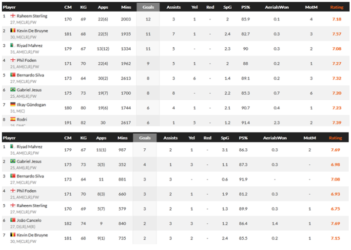 (图)在即将过去的这个赛季中,曼城在联赛中的最佳射手是斯特林(12球),欧冠中的头号得分手是马赫雷斯(7球),缺少高产射手的弊端会在强强对话中被放大。