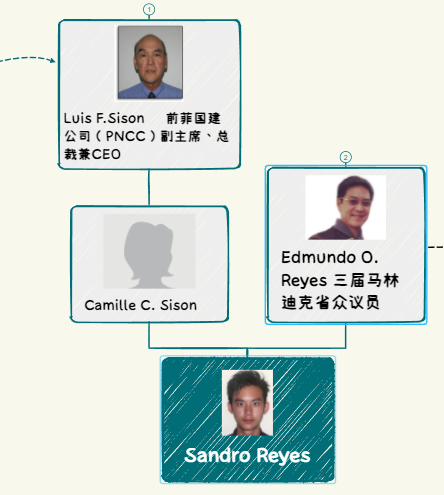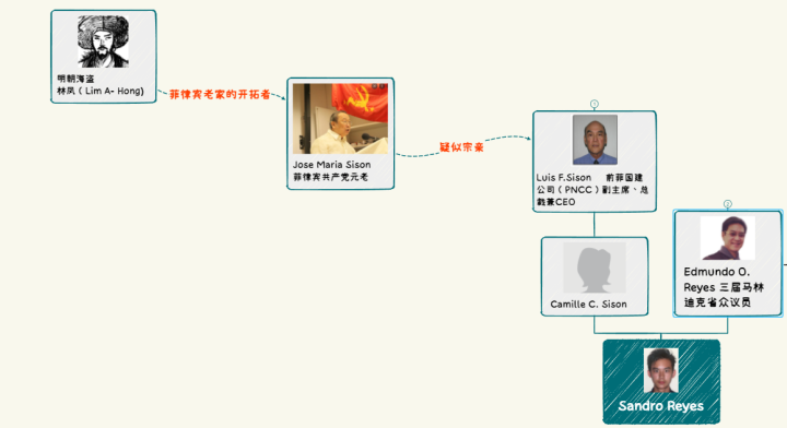 根据公开资料显示,桑德罗Sandro的父母分别是埃德蒙多-雷耶斯Edmundo Ongsiako Reyes 和 卡米拉-西松Camille Cepela Sison。我们先看他的母亲卡米拉-西松Camille Sison 。她的父亲名叫路易斯-西松Luis Sison,是一名律师,同时还曾担任菲律宾Guojia建筑公司(PNCC)的副主席,PNCC是菲律宾Guoyou且是菲律宾最大的基建服务商,由此可见卡米拉Camille出身于一个家境非常殷实的家庭,同时,值得关注的是西松Sison家族与中国有着比较密切的关系。