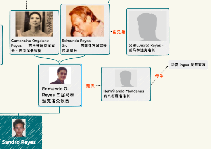 不过,根据调查,马林迪克省的雷耶斯家族并非华裔,他们是当地一个历史悠久的权势家族,同样也是大地主背景,在该省如同土皇帝般的存在。不过,雷耶斯家族并不是通向本次调查最精彩的节点。而是在桑德罗的奶奶,卡曼西塔-王(Camencita Ongsiako)。