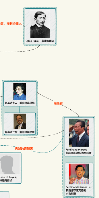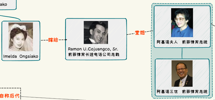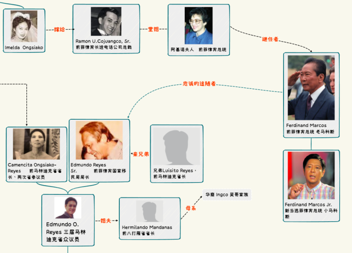 值得玩味的是,老埃德蒙德-雷耶斯追随的独裁者费尔南德-马科斯在政变下台后,继任者正是阿基诺夫人。或许对于拉蒙-王(Dr. Ramon Ongsiako)博士来说,这或许是他人生中最最重要的一笔投资,而当时的菲律宾政坛也无非是他两个女婿背后所代表的政-治-集-团-的左右互搏。但显然,这也不过是王沙哥家族在仅130年间,以极其静默的方式参与到了菲律宾顶级政-坛-博弈中的一个缩影,他们先后触达了五位国家元首,而这仅仅是我们通过公开资料推导出的结果,可能远远不如那些幕后的真相更让人吃惊。菲律宾国父及四位总统