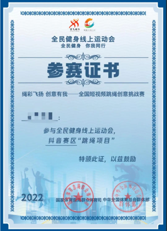 而且,所有项目的参赛均不限制人数,按照各个项目的要求拍摄参赛视频并上传到指定网站,所有参赛者均可获得由国家体育总局群体司、中华全国体育总会群体部颁发的电子参赛证书。赛事的组织者还将分别设置“超级人气奖”“最佳人气奖”“最具风采奖”“最具活力奖”等多个奖项,并按点赞数排名,由国家体育总局相关部门向获奖者颁发电子证书。