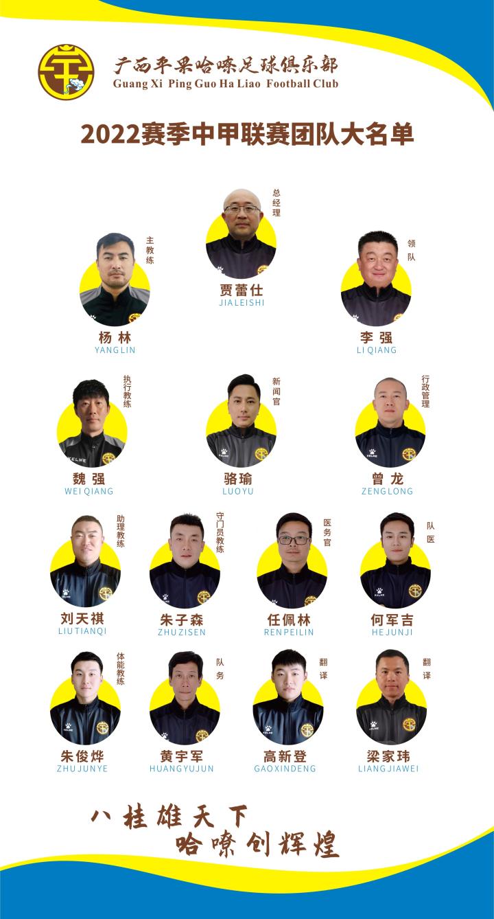 新起点,新征程,2022新赛季开启在即,广西平果哈嘹足球俱乐部在新援引进工作结束后,确定了征战2022赛季中甲联赛的大名单,本赛季共报名30位球员。
