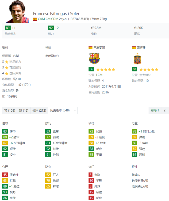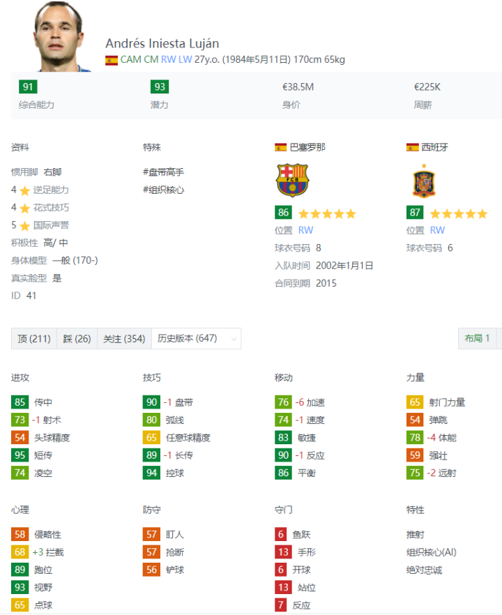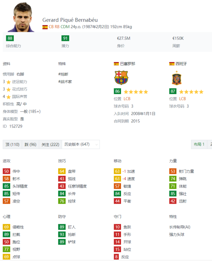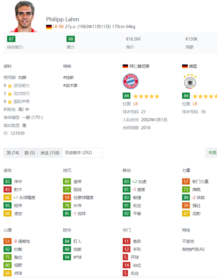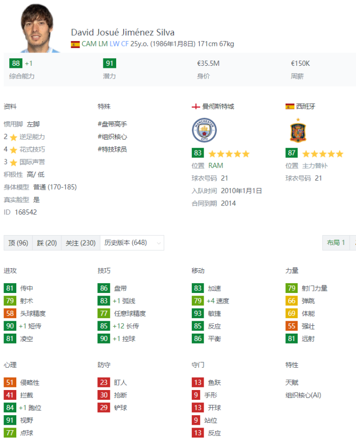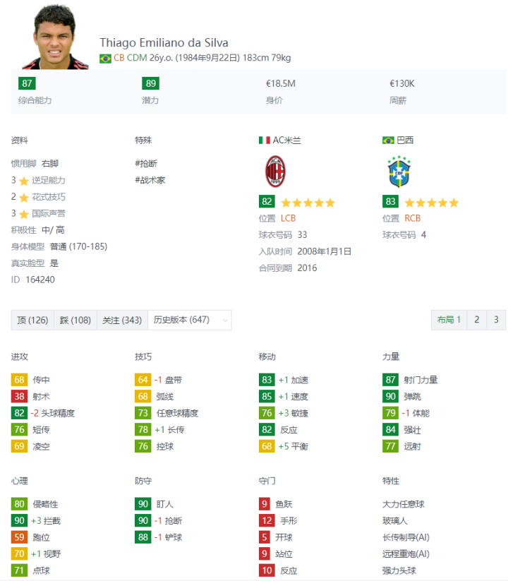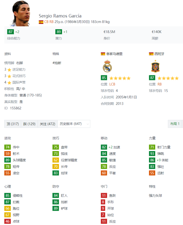 弟媳在FIFA12中就已是顶级的存在了,特别是作为一名中后卫他的传球和组织才华很是特别,十年之后的今天,37岁的他在FIFA22中的能力值依然还保持86之高。
