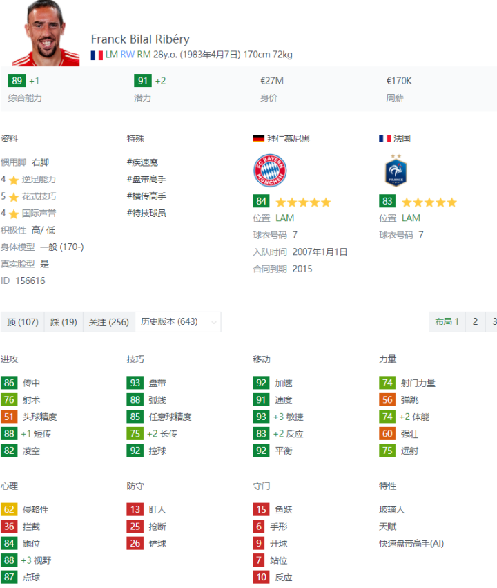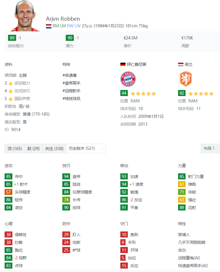 十年前的里贝里刚刚年满29周岁,他和罗本带领拜仁连续两年闯进欧冠决赛,相信当年很多玩家都选择过拜仁控制罗贝里组合吧,速度快和盘带出色的边路球员在游戏中非常吃香。