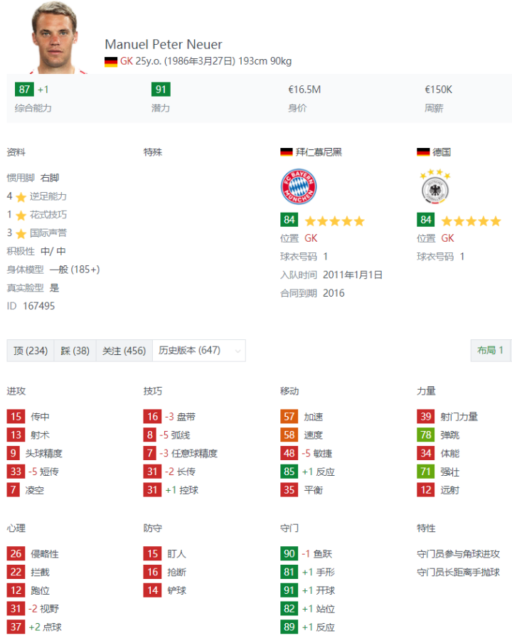 如今的诺伊尔依然是世界上最好的门将之一,在FIFA22中他的能力值高达90。