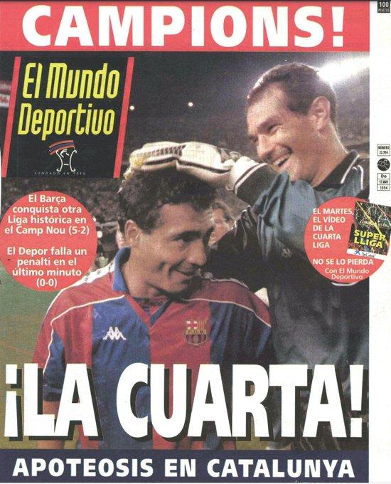 4、1994年5月14日,巴萨在联赛第38轮主场5-2战胜塞维利亚,连续第4个赛季取得联赛冠军。斯托伊奇科夫梅开二度,罗马里奥、劳德鲁普和巴克罗分别进球。