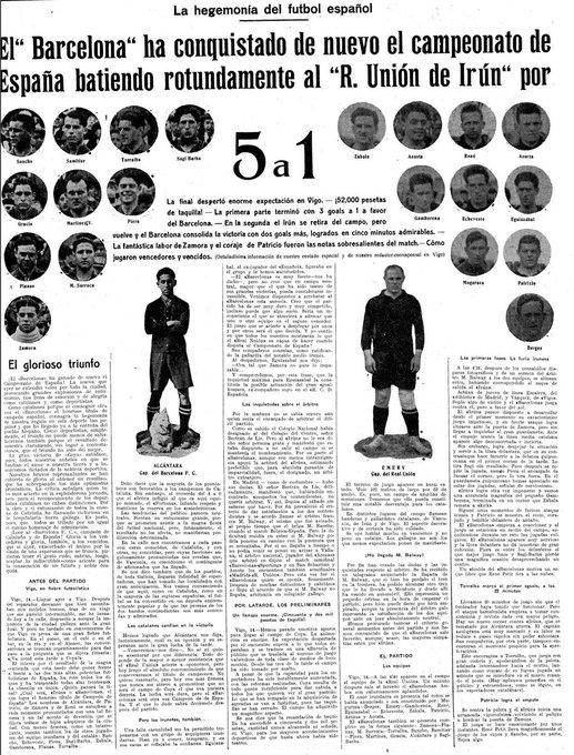 1、1922年5月14日,巴萨在国王杯决赛中5-1战胜皇家联合,历史上第5次赢得国王杯冠军。阿尔坎塔拉梅开二度,托拉尔巴、萨米蒂埃尔和格拉西亚分别为巴萨进球。