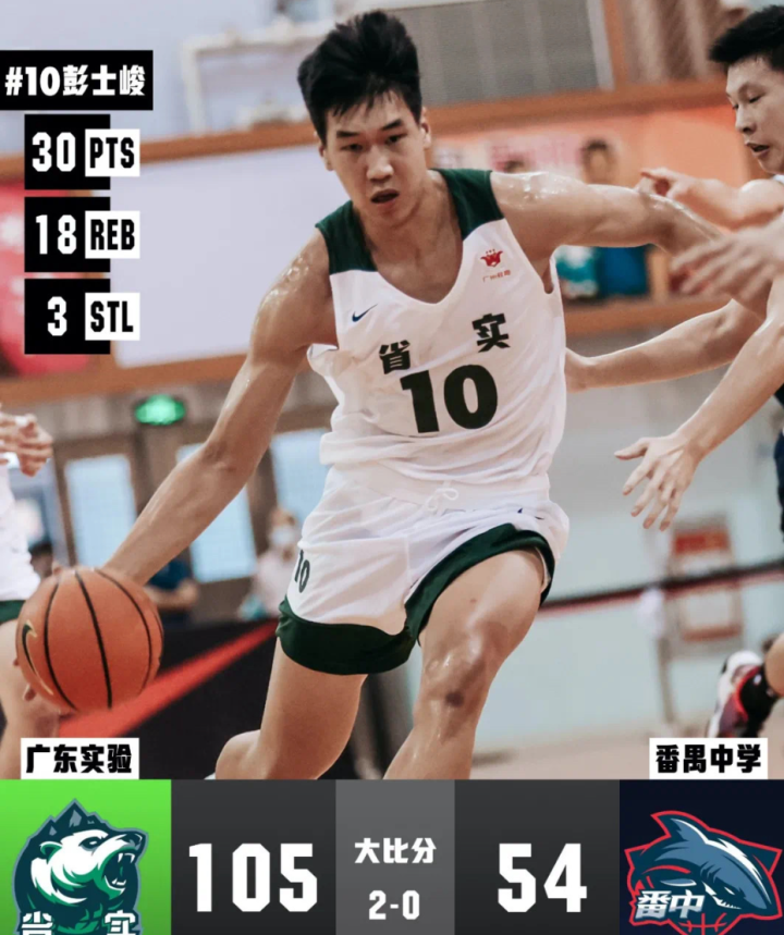 昨天,省实再战番中,彭士峻拿到了30分、18个篮板和3次抢断,率领球队再度以105比54大胜。显然,彭士峻在这个层次的比赛中已经看不到对手,他应该可以尝试去打一下更高级别的比赛。