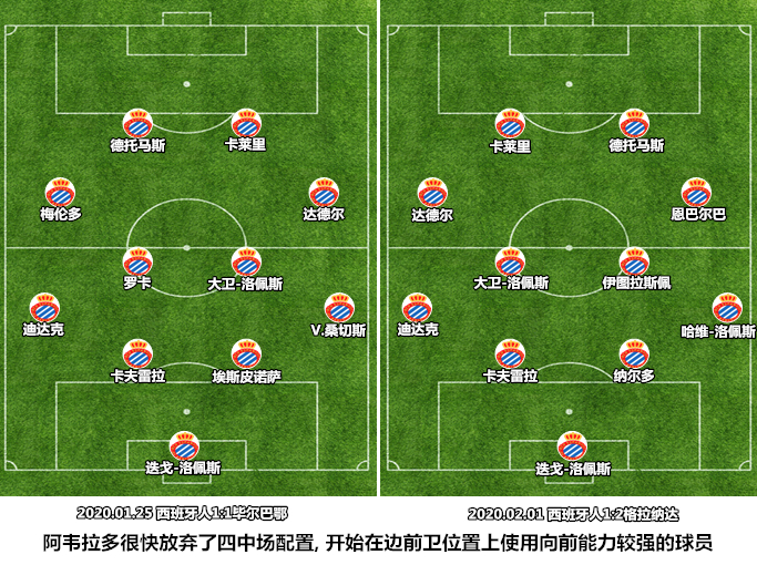 得益于曾经带领升班马成功保级的履历,阿韦拉多得到了来自西班牙人高层的有力支持,德托马斯、卡夫雷拉和恩巴尔巴在2019/20赛季冬窗加盟,这些都是符合新帅战术要求的球员。