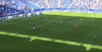 (图)对阵阿拉维斯的进球,武磊用速度甩开防守,在射门前适时减速调整,成功地骗过了门将的重心,出脚突然且角度上佳,颇具大将风度。