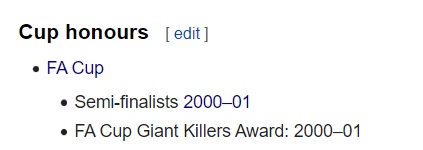 在韦康比流浪者足球俱乐部(Wycombe Wanderers F.C.)的维基百科中,我同样发现了这个奖杯,在他们的荣誉栏中显示他们获得了2000-01赛季的“巨人杀手奖”。