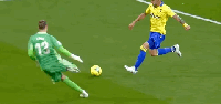 比赛第61分钟,卢宁禁区内放倒内格雷多送点,随后扑出了对方的点球。
