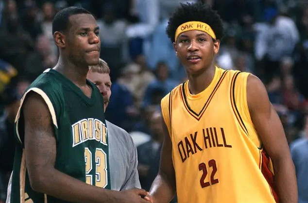 詹姆斯与安东尼现在同为湖人队球员,而高中时期,他们就是饱受全美关注的明星球员,彼时的詹姆斯效力于圣文森特-圣玛丽高中,而他当时的对手、好友安东尼效力于陶森天主教高中,在高四那一年,安东尼转校到橡树山高中,此后他选择继续学业,在锡拉丘兹大学校队征战NCAA联赛,而詹姆斯在高三毕业后直接进入了NBA。