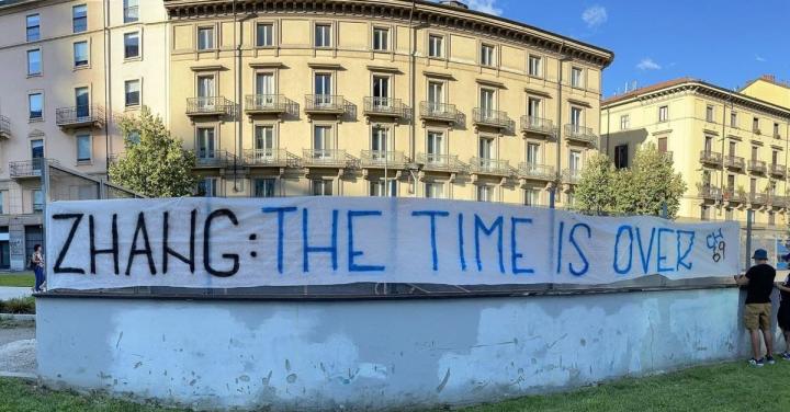 去年夏窗国米球迷打出抗议张家的横幅