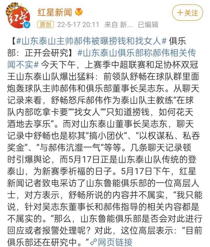 从山东泰山俱乐部的角度肯定是希望事情越小越好,相比来说事件是否属实其实并没有那么重要。只用一句不属实回应是很难服众的,这反倒像是一种无言以对的回应。既然不属实,那就把这个事情的来龙去脉公布一下,发一个官方公告。对事件的一个澄清,还需要开会研究吗?