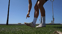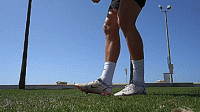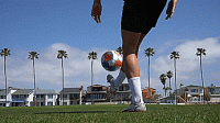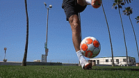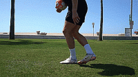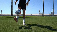 第二种技巧是脚尖弹球的另一种变化,但这次不是像第一种技巧那样从脚尖顶部弹球,而是从大脚趾内侧弹球。