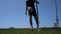 经过一些练习它应该是这样的,把它踢起来,放到球下面,然后我们继续颠球。