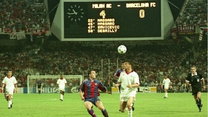 6、1994年5月18日,巴萨在欧冠决赛中0-4惨败给AC米兰,屈居亚军。