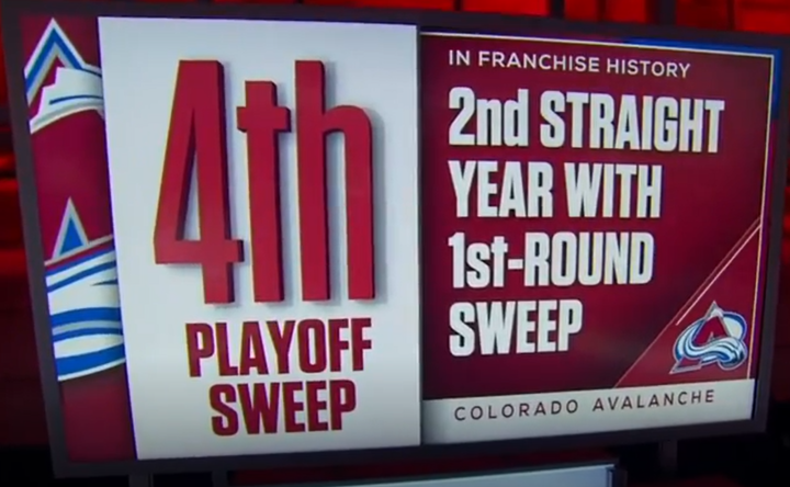 雪崩队史第四次完成横扫,连续两个赛季在首轮实现横扫。