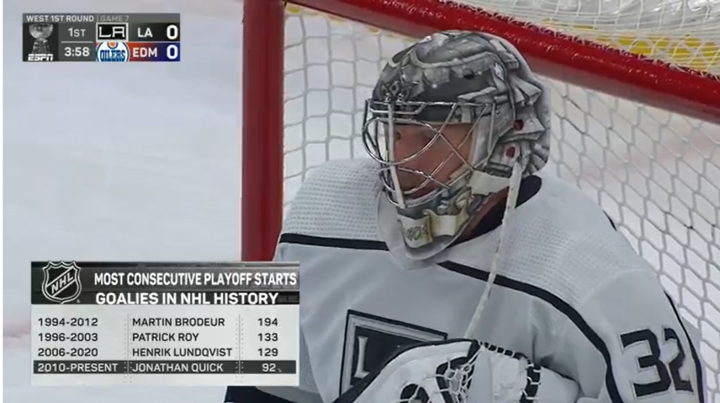 油人vs国王G4,国王老门将奎克自2014总决赛后,首次在季后赛完封。他的季后赛完封数就此上双。