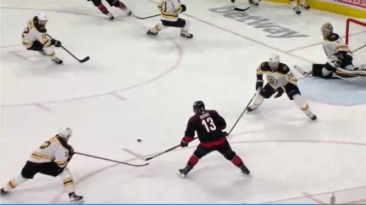 火焰vs星G6,星队后卫海斯卡宁把马修·特卡丘克骗到倒地,随后挥杆远射把球打进,帮助星反超比分。