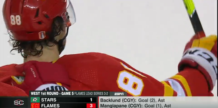 火焰vs星G5,曼贾帕内终于开张并为巴克隆德送上助攻,火焰第三节进3球,3:1逆转击败星。这是火焰自2015年西部半决赛对阵小鸭以来,首次在两节结束后落后的情况下,逆转取胜!