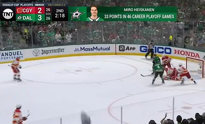G6对于主场作战的星而言不容有失。罗普·辛茨和拉夫尔的进球让星确立了2:0的领先优势。火焰打出反击,约翰尼·古德罗横传门前,迈克尔·斯通用杆一推轻松把球打进。随后巴克隆德的One-Timer被奥廷杰挡出后,又不幸打在海斯卡宁身上弹进球门!火焰扳平比分后,海斯卡宁将功补过:他在射门前做出假动作,把火焰进攻手马修·特卡丘克骗到倒地,一杆大力击射打穿马克斯特伦把守的球门!星反超比分后,火焰屡次进攻无法攻破奥廷杰把守的球门。最后时刻,泰勒·塞金轻松打进空网球,星4:2拿下G6,将系列赛带到抢七战。