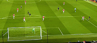 当我们持球到球门附近时,发现有人在门将身后的球门里补防。