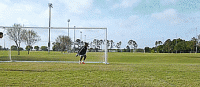 当球在空中飞到我们身后时,出于某种原因,我们的脸背对着球门。