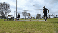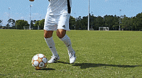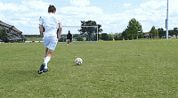这时我们可以使用挑射技术,把脚趾伸到球下面,然后向上轻弹。