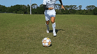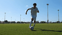 看起来就像要射门,但是向内从球前绕一周。
